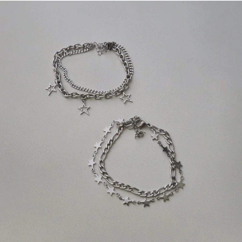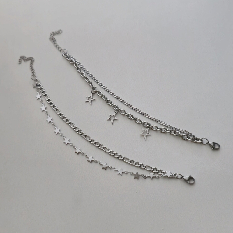دستبند دو ردیفه 3 ستاره آویز توخالی یا دو ردیفه فیگارو و ستاره