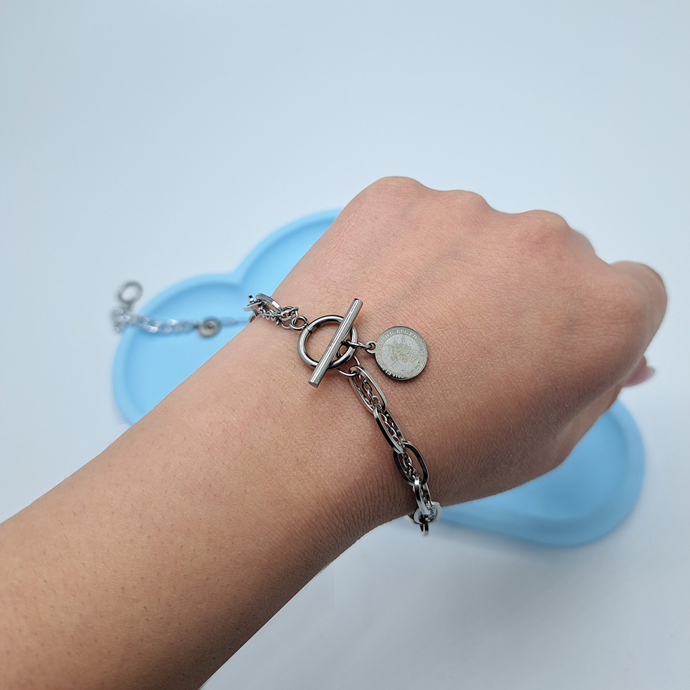 دستبند استیل الیزابت با قفل تی