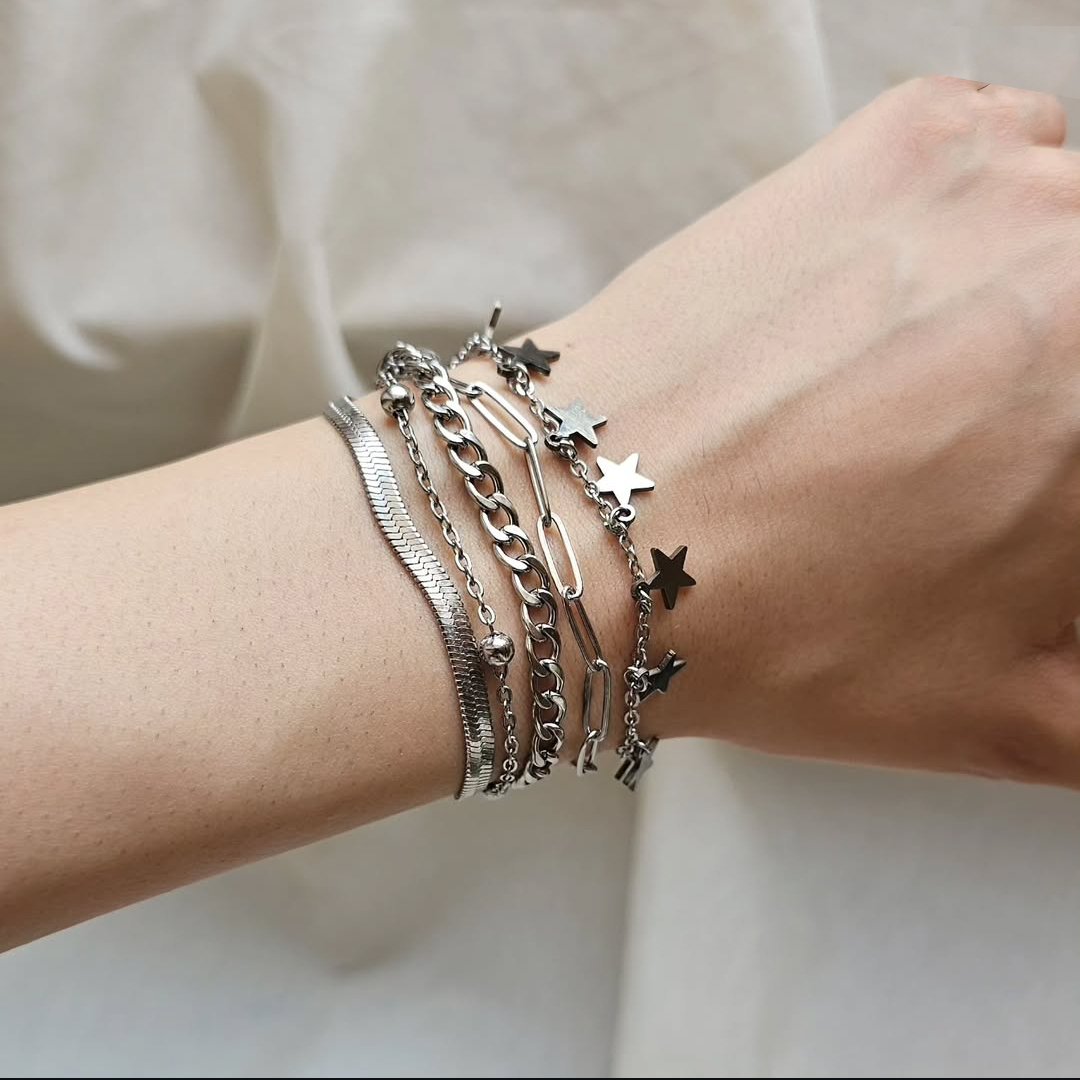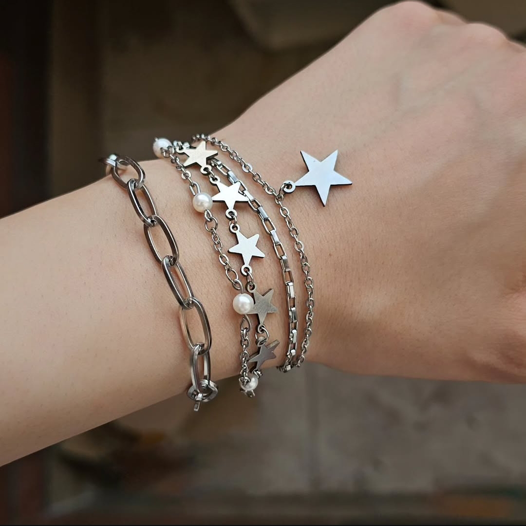 دستبند استیل ترکیبی ستاره با طراحی خاص و ماندگاری بالا، انتخابی جذاب برای تکمیل استایل روزمره یا مهمانیها. این مدل از جنس استیل ضد حساسیت ساخته شده و در برابر تغییر رنگ مقاوم است. مناسب برای استفاده طولانیمدت، بدون ایجاد حساسیت پوستی. طراحی مدرن این دستبند آن را به گزینهای عالی برای هدیه تولد، سالگرد یا ولنتاین تبدیل کرده است.