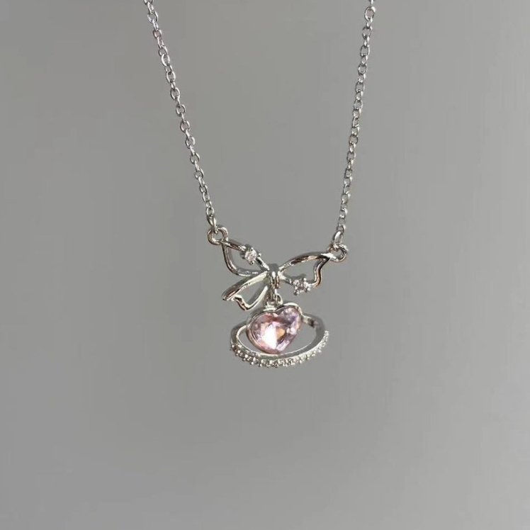 گردنبند جواهری پاپیون و قلب آویز
