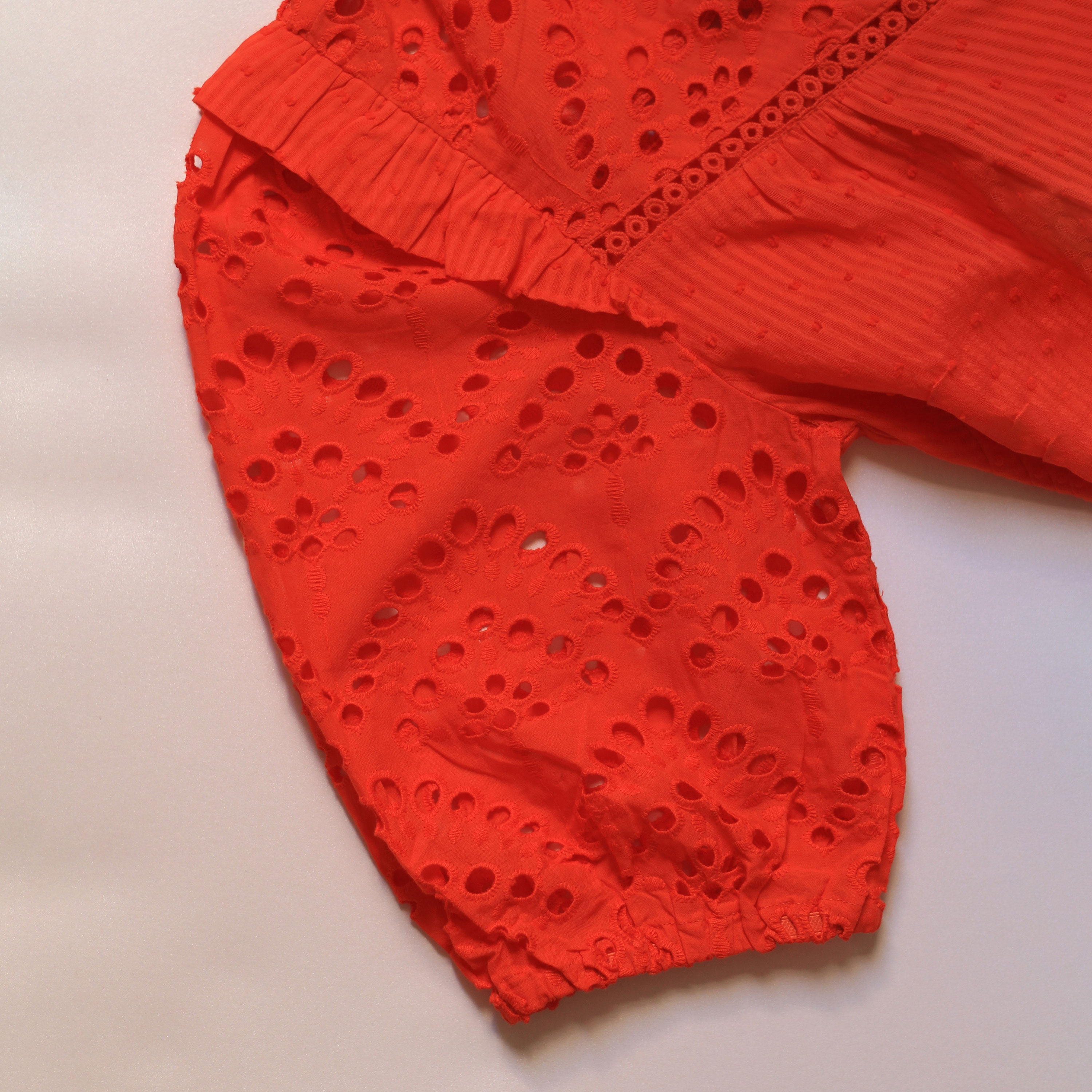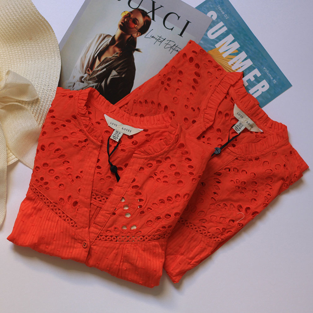 شومیز نخ خامهدوزی زنانه رنگ آجری | برند لاو اند رز | سبک و تابستانی